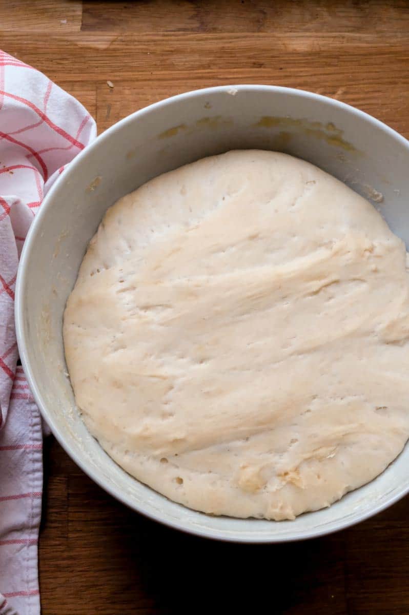 - Cover and leave at room temperature for 45-60 minutes, the dough will have noticeably risen.